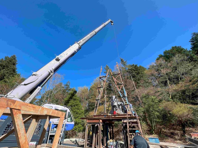 温泉ボーリングのお話-5 2023-06-05 最終更新日時 : 2023-10-28 itagaki いよいよ、櫓(やぐら)の組み上げ工事です。 この櫓は地上30m規模のどちらかと言えば 標準的な櫓となります。 それにしても温泉ボーリング工事では 櫓は、シンボリックな建造物です。 これから様々な周辺機材を設置して 掘削工事が始まります。 Post Views: 0