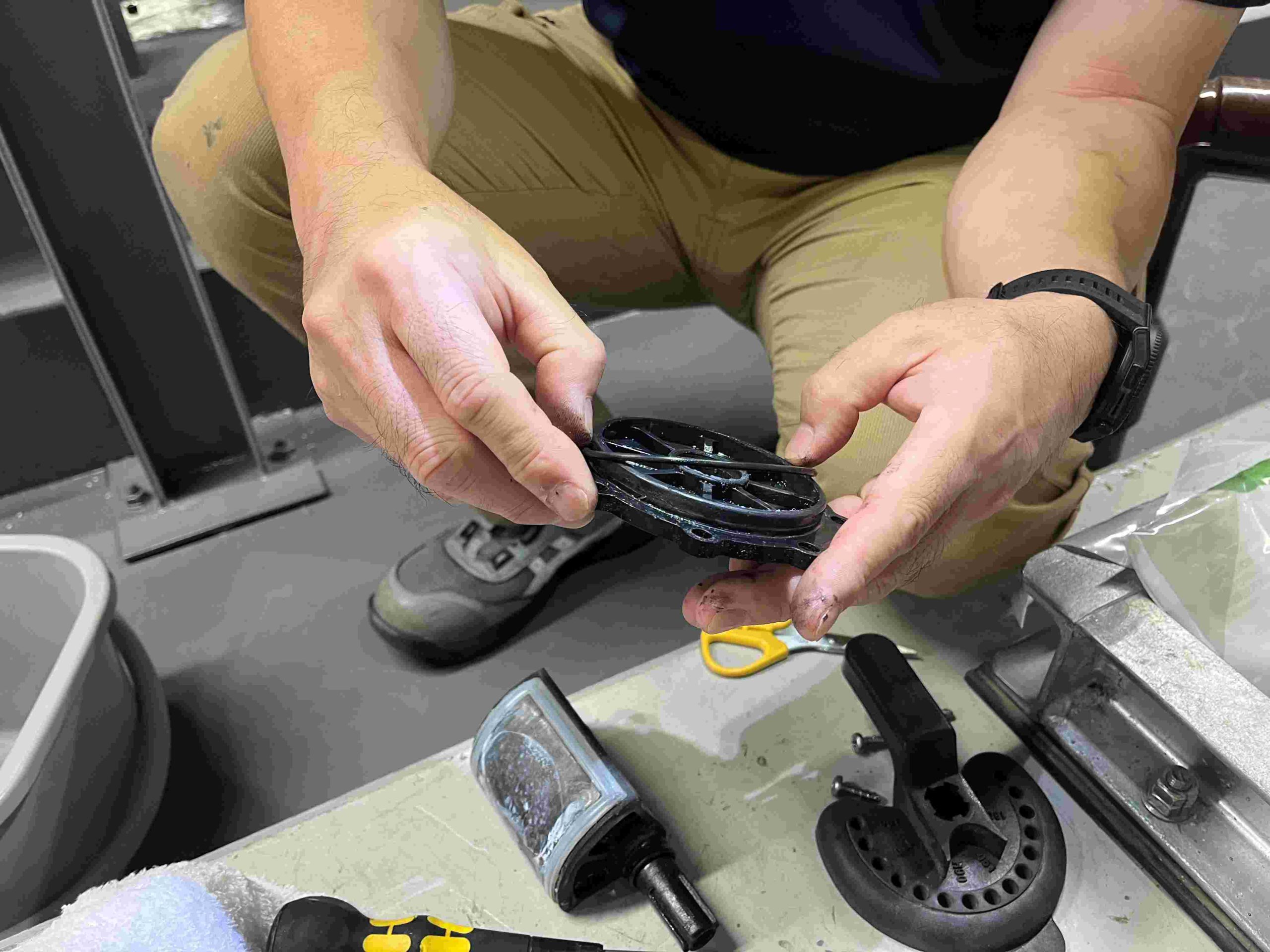 特殊施設の定期メンテナンスです。 細かいところも丁寧にメンテナンスをいたします。 Senon株式会社では、他社メーカーの機器類も メンテナンス・交換等に対応いたします。 温泉設備でお困りの時は、ご相談ください。