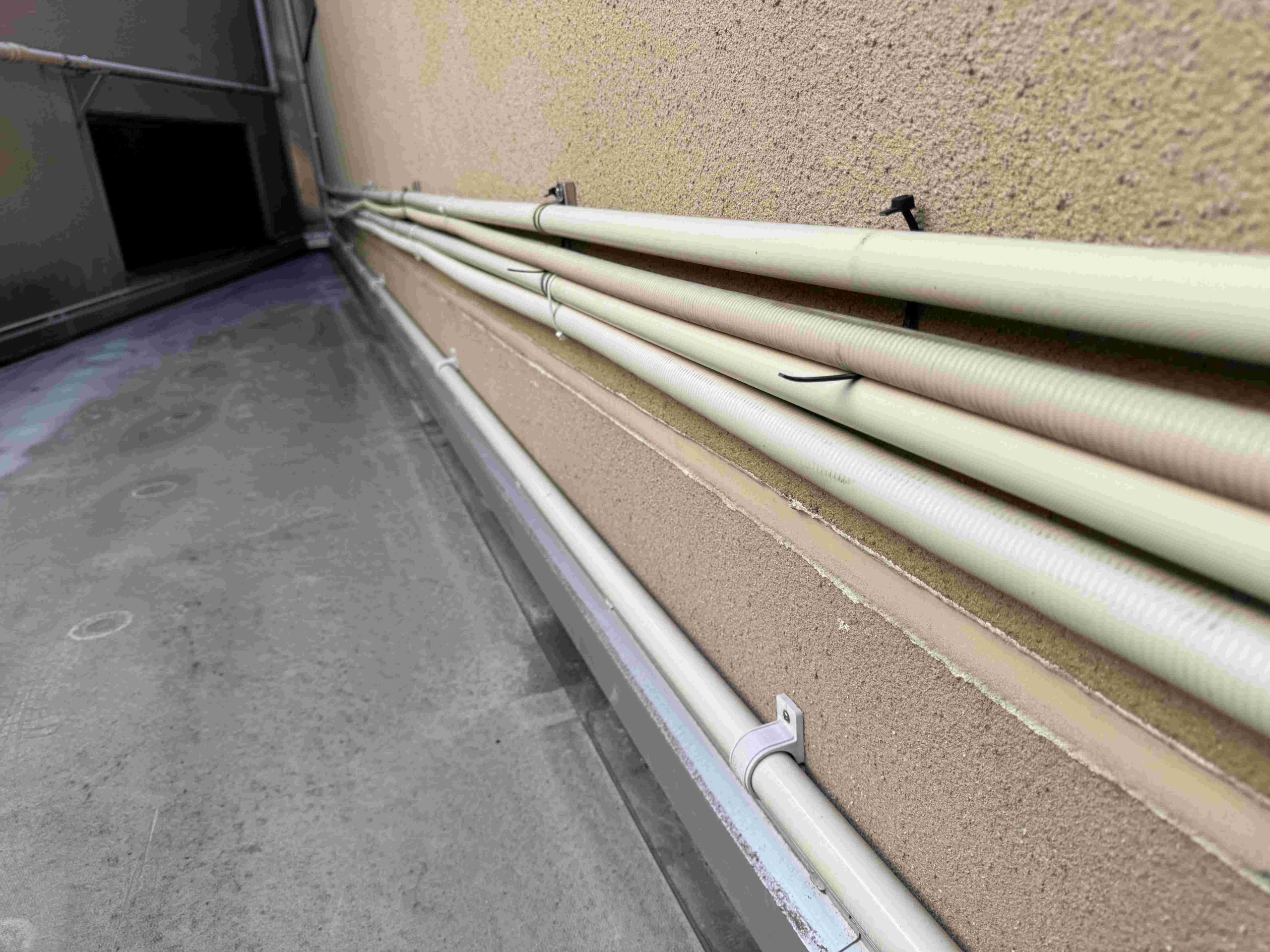 老舗高級温泉旅館さんの温泉設備改善工事です。 温泉槽を増設し、その温泉槽の水位と温度 フロント事務所内で監視したいという要望です。 計装線の通線工事を実施しました。 今後、制御盤を事務所に設置します。